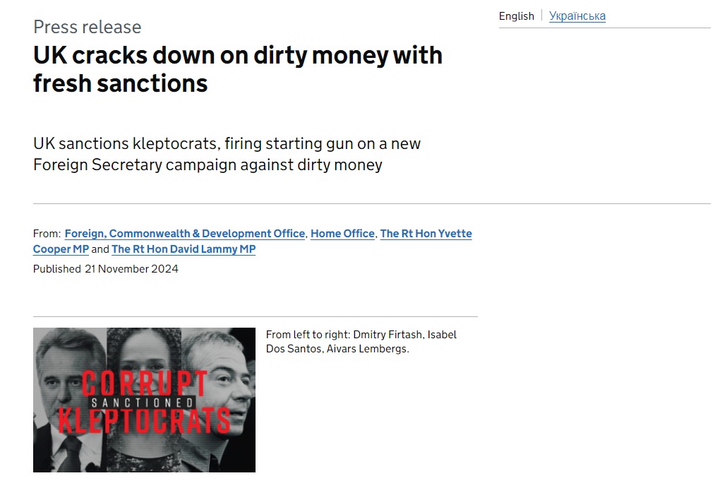 "Дмитрий Фирташ - печально известный олигарх, выведший сотни миллионов фунтов из Украины, полученных благодаря коррупционным схемам и контролю над распределением газа. Только на рынке недвижимости Великобритании он скрыл десятки миллионов фунтов, полученных нечестным путём. Соединенное Королевство также применило санкции к его жене Ладе Фирташ, которая извлекла выгоду от его коррупционной деятельности и на которую записаны его британские активы, в частности здание старой станции метро "Бромптон-роуд", и Дениса Горбуненко, британского финансового "посредника", способствовавшего коррупции Фирташа", - сказано в пресс-релизе.