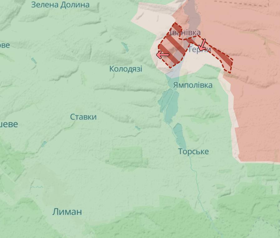 Также россияне продвинулись в районе Тернов, на левом берегу Жеребца (рядом с Ивановкой на Лиманском направлении).