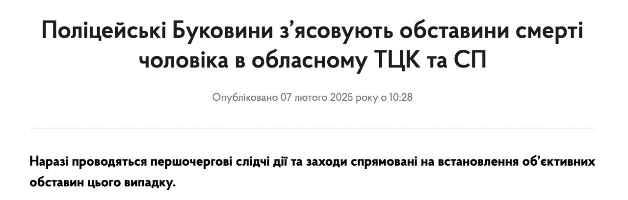 В Черновицкой области 32-летний мужчина погиб во время прохождения медкомиссии в ТЦК. Его задержали на улице сегодня.