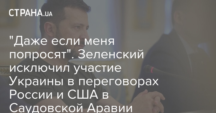Президент Владимир Зеленский заявил, что Украина не будет участвовать в завтрашних переговорах США и РФ в Саудовской Аравии, "даже если меня попросят".