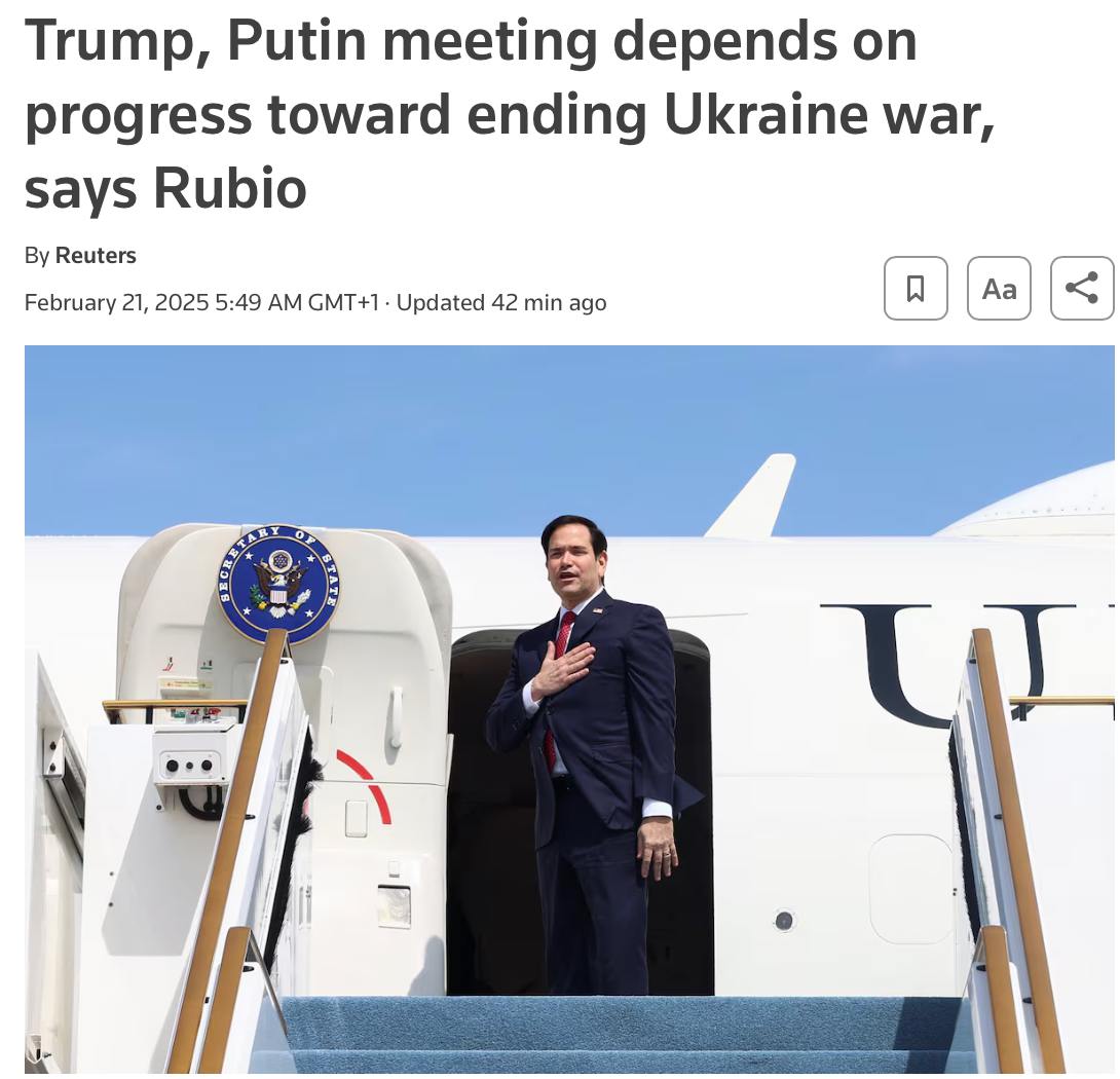 Встреча между Трампом и Путиным "во многом будет зависеть от прогресса в прекращении войны в Украине" - Рубио