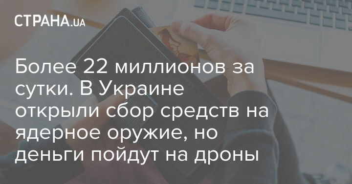 Более 22 миллионов за сутки. В Украине открыли сбор средств на ядерное оружие, но деньги пойдут на дроны