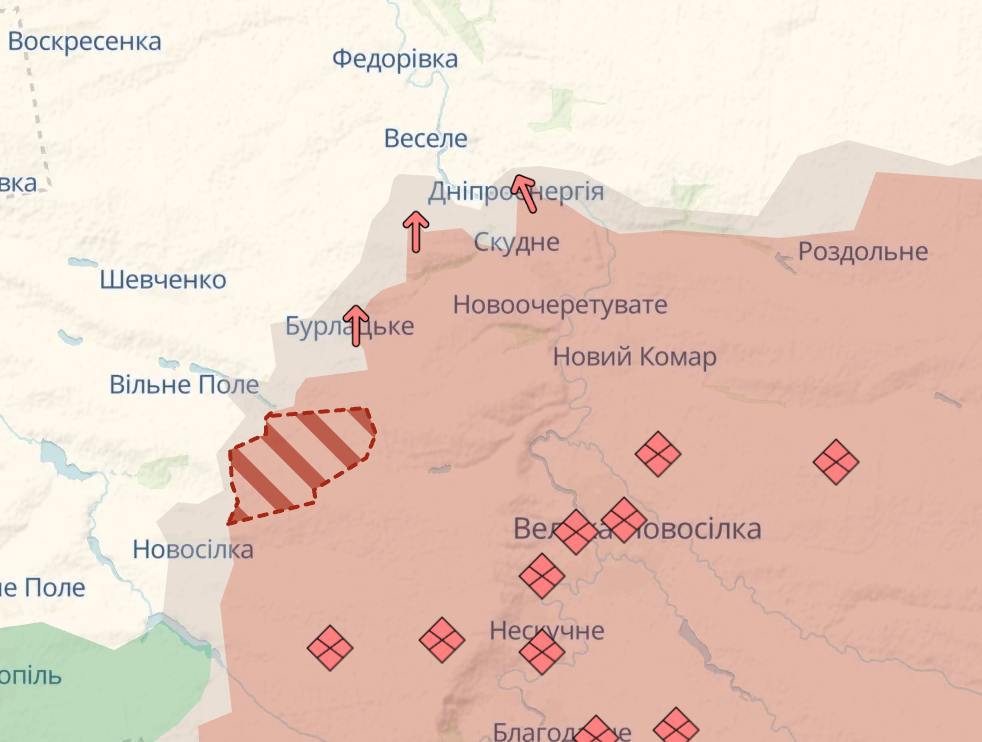 17.15 Россияне продвинулись в районе Новоселки, свидетельствует карта Deep State.