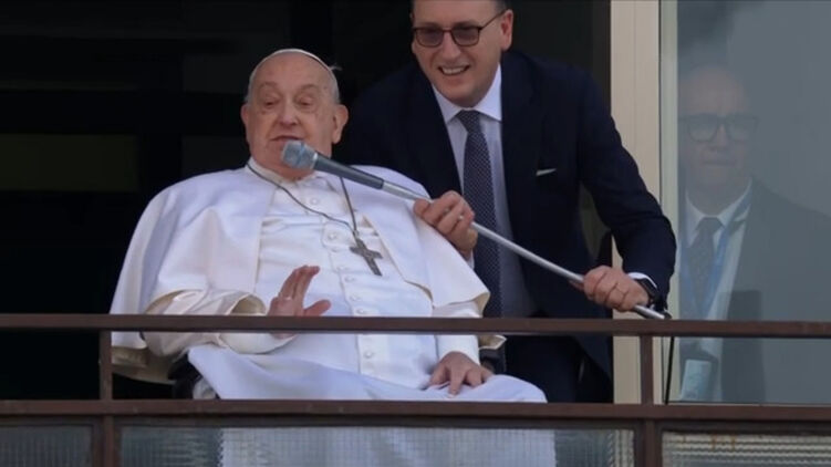Главу католической церкви выкатили на коляске на балкон, откуда Франциск смог сказать несколько слов собравшимся перед зданием прихожанам и сочувствующим.