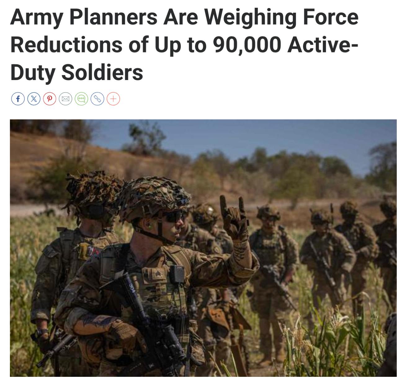В США рассматривают возможность масштабного сокращения численности личного состава армии до 90 000 человек.