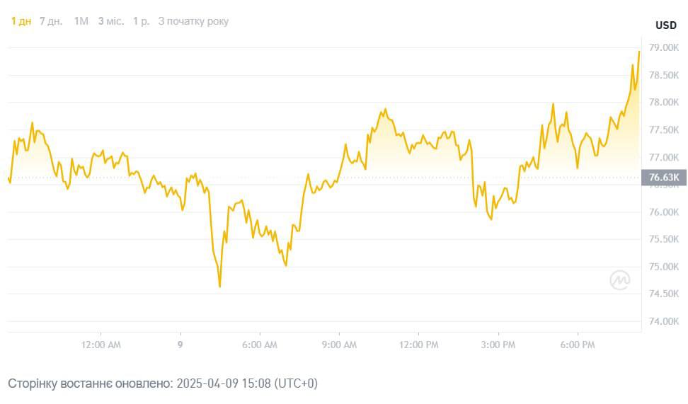 Между тем курс биткоина и фондовые индексы пошли в рост после заявления Трампа о паузе на 90 дней в введении тарифов после других стран.