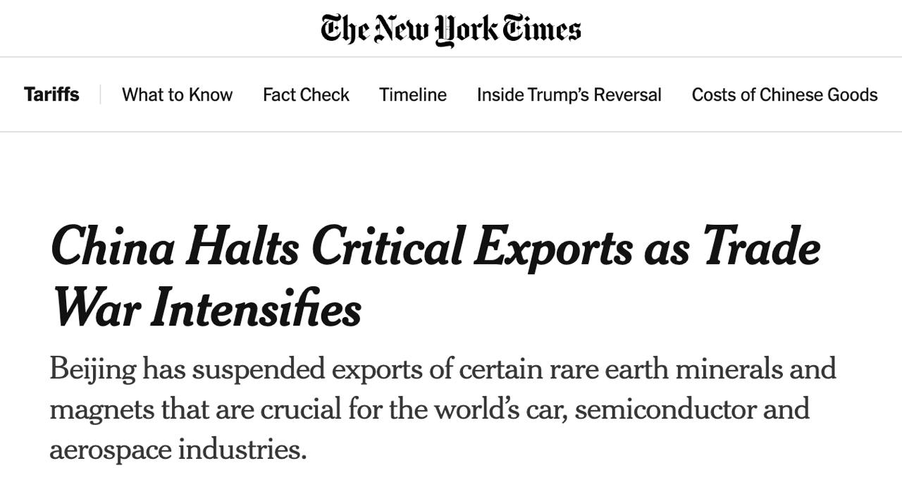 Из-за обострения развязанной Дональдом Трампом торговой войны власти Китая останавливают критически важный экспорт некоторых редкоземельных минералов и магнитов.
