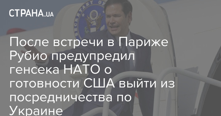 "Государственный секретарь Марко Рубио поговорил сегодня с генеральным секретарем НАТО Марком Рютте, чтобы проинформировать его о мирном предложении, представленном вчера украинской делегации в Париже и российским чиновникам по телефону. Секретарь выразил надежду президента Трампа и Соединенных Штатов на то, что это предложение будет принято и приведет к прочному и прочному миру в Украине. Секретарь подчеркнул, что, хотя наша нация стремится помочь положить конец войне, если в ближайшее время не появится четкий путь к миру, Соединенные Штаты отступят от усилий по посредничеству в мире", – говорится в заявлении, опубликованном пресс-секретарем Госдепа Тэмми Брюс.