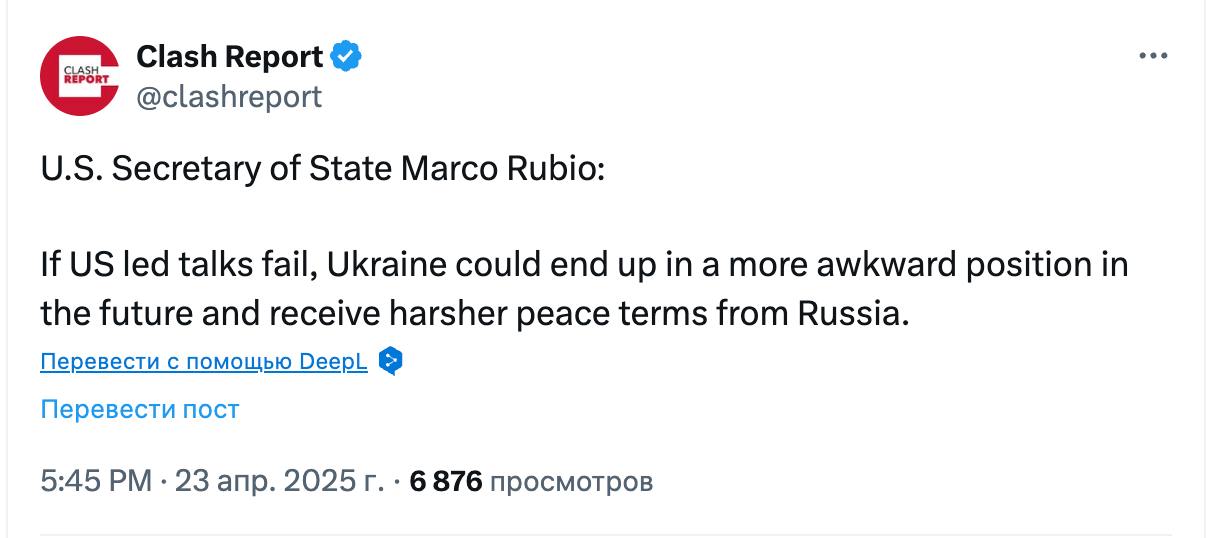 Об этом заявил госсекретарь США Марко Рубио, передает паблик Clash Repost.