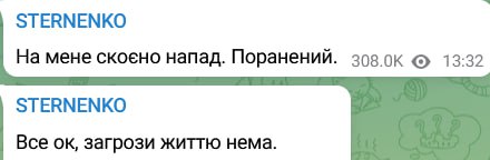 Позже Стерненко рассказал, что пуля, выпущенная в него, прошла навылет и "ничего важного не задела".