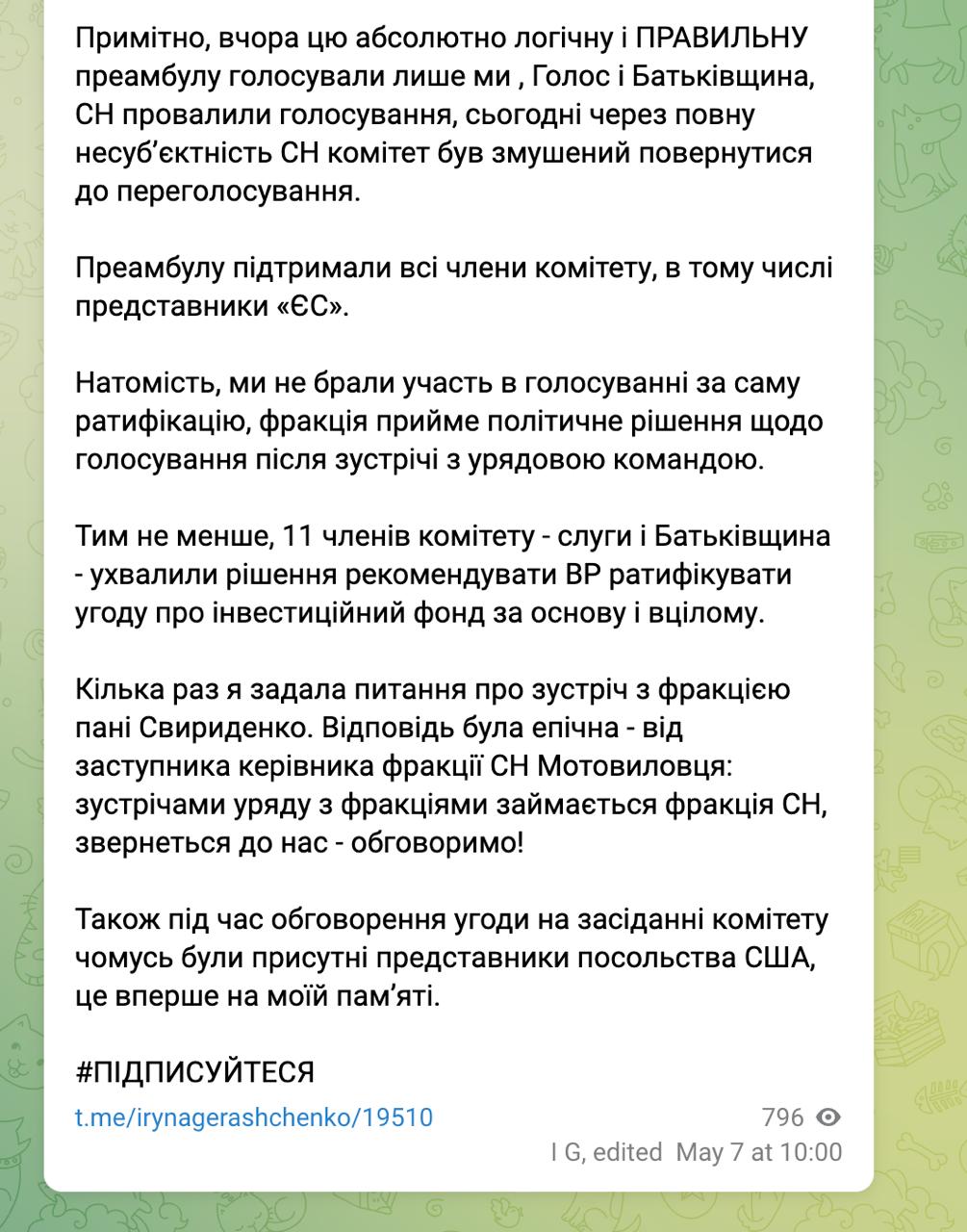 К слову, сегодня американское посольство в Украине подтвердило, что Рада рассмотрит ратификацию минерального соглашения с США завтра.