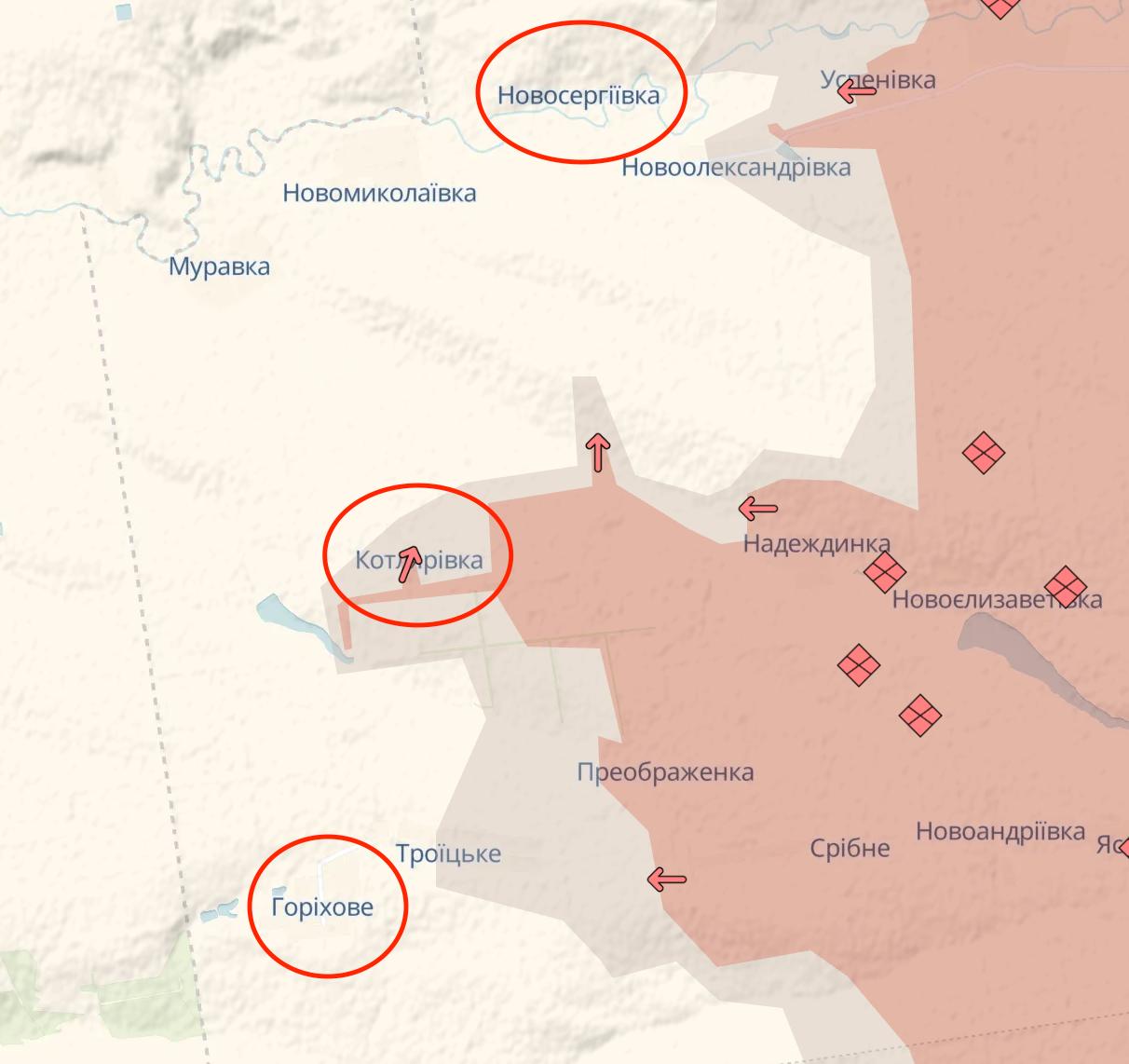 Также Мучной заявляет, что россияне уже зашли в Новосергеевку, что севернее Котляровки, и ведут бои за Орехово южнее, от которого до границы Днепропетровской области всего один км.