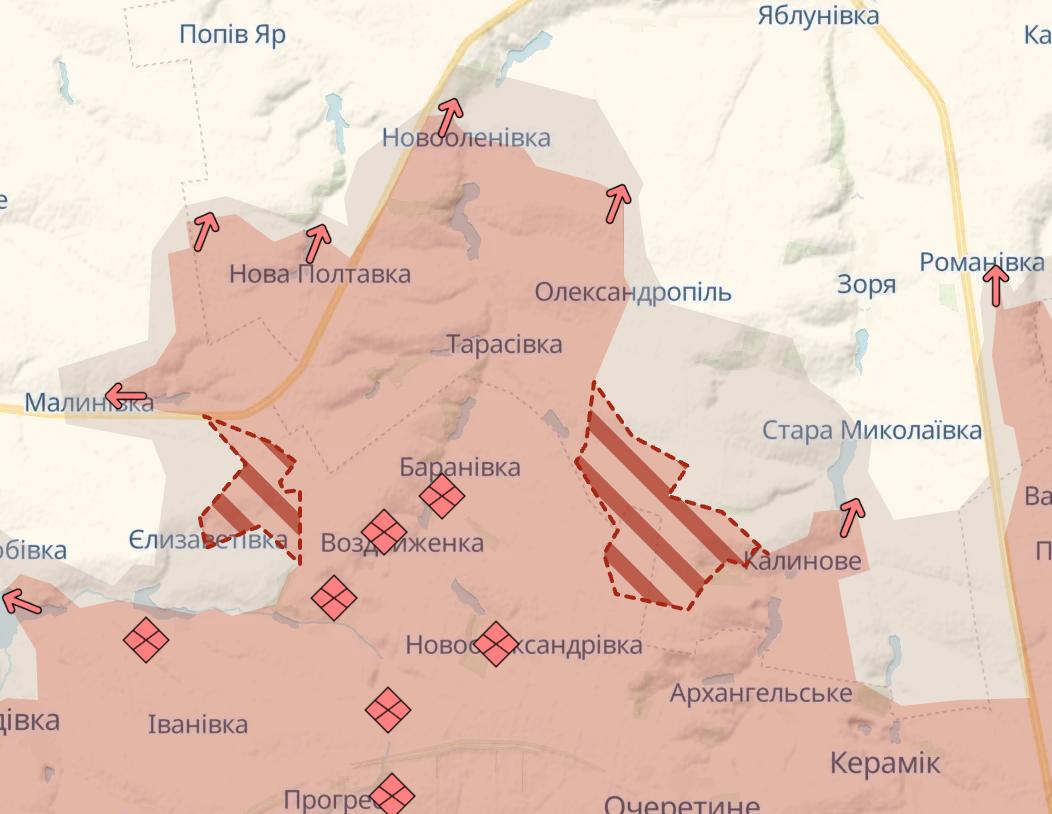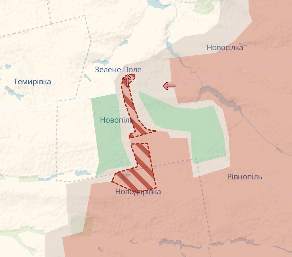 К западу от Великой Новоселки россияне продвинулись со стороны Новодаровки к Зеленому Полю, создав мешок к востоку от Новополя.