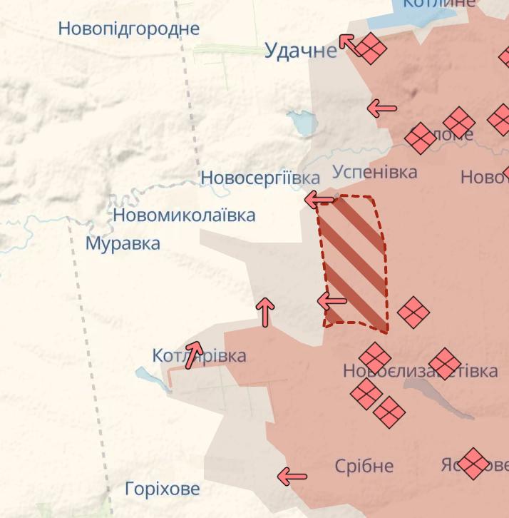 Также россияне существенно продвинулись в Новоалександровке, что около границы с Днепропетровской областью, юго-западнее Покровска.