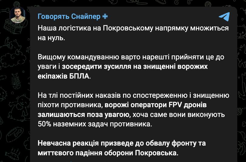 "Несвоевременная реакция приведет к обвалу фронта и моментальному падению обороны Покровска", - заявляет военный.