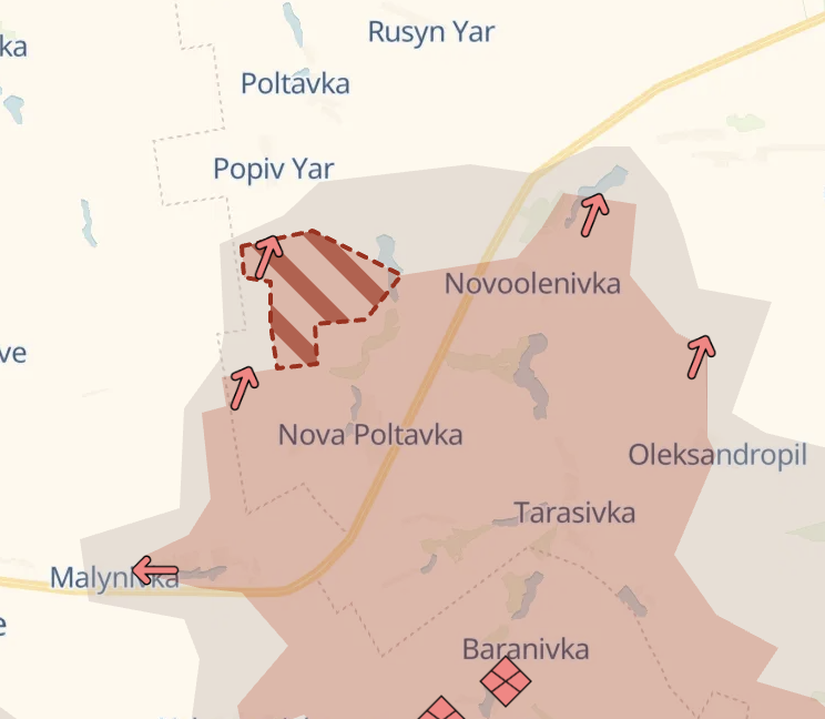 Россияне снова продвигаются к югу от Константиновки. Со вчерашнего дня они прошли вперед в районе Яблоновки и Попова Яра, сообщает Deep State.