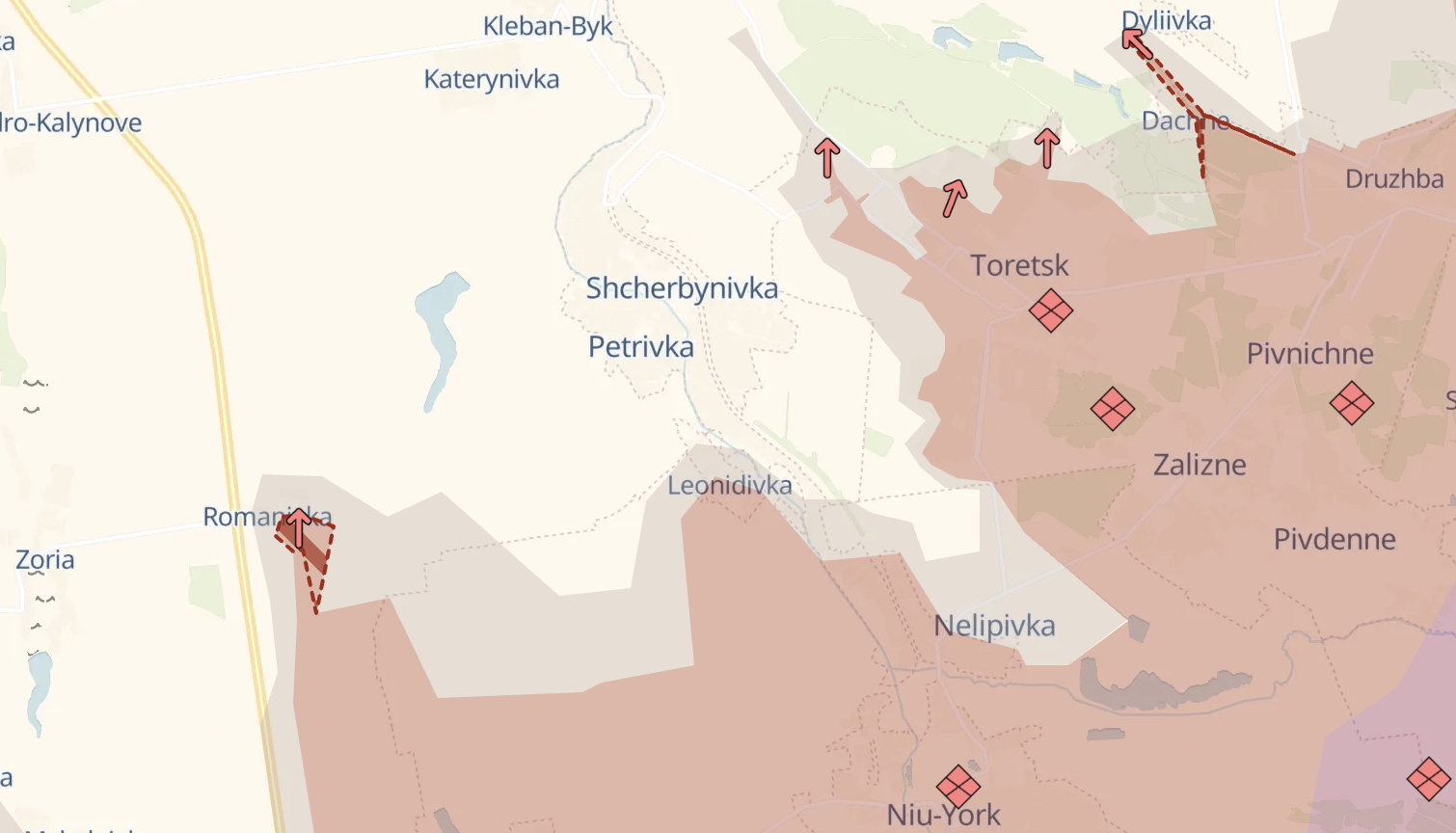 Восточнее они продвинулись в Романовке и к северу от Торецка - в Дачном.