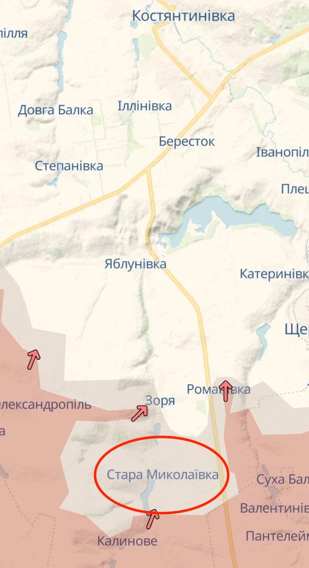 Потеря Старой Николаевки означает, что карман, удерживаемый ВСУ к югу от Константиновки, фактически захвачен.