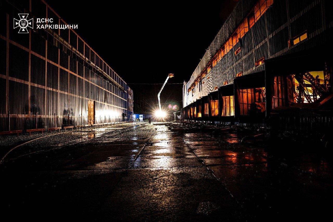 12.33 В Харьковской области после прилёта загорелась предприятие. Огонь охватил 7500 квадратных метров, сообщает ГосЧС.