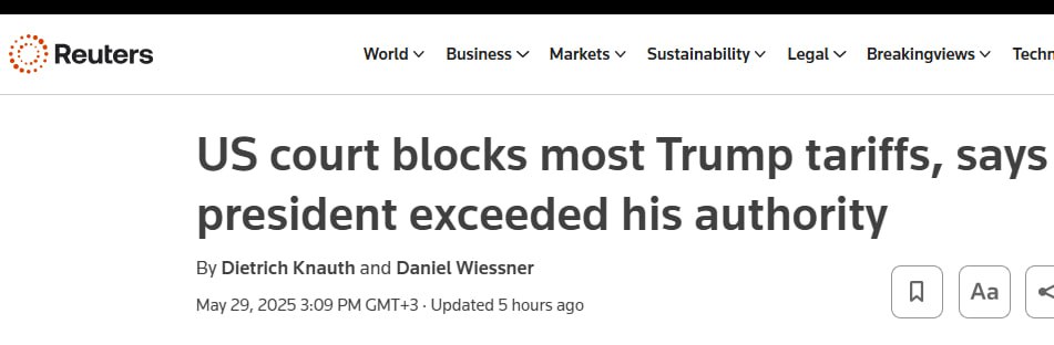 В среду Федеральный суд США по делам международной торговли заблокировал реализацию решения Трампа на установление пошлин на импорт, тоже обосновав это превышением президентских полномочий.