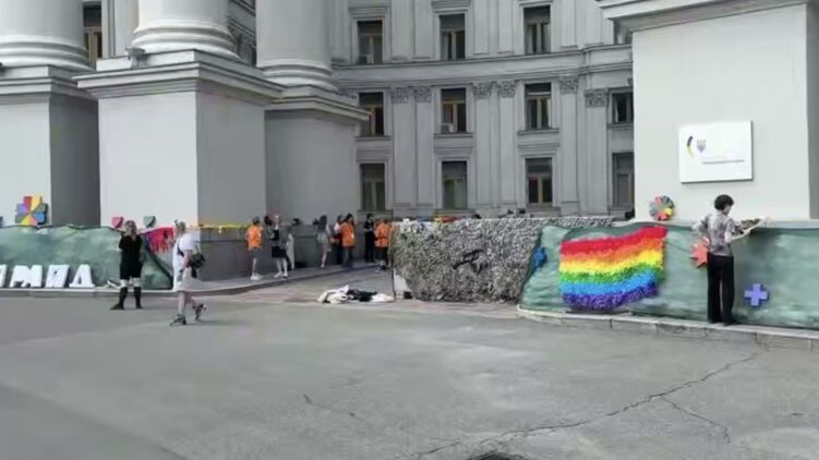 Периметр оцеплен полицией. У здания МИД в Киеве началась акция ЛГБТ. Видео