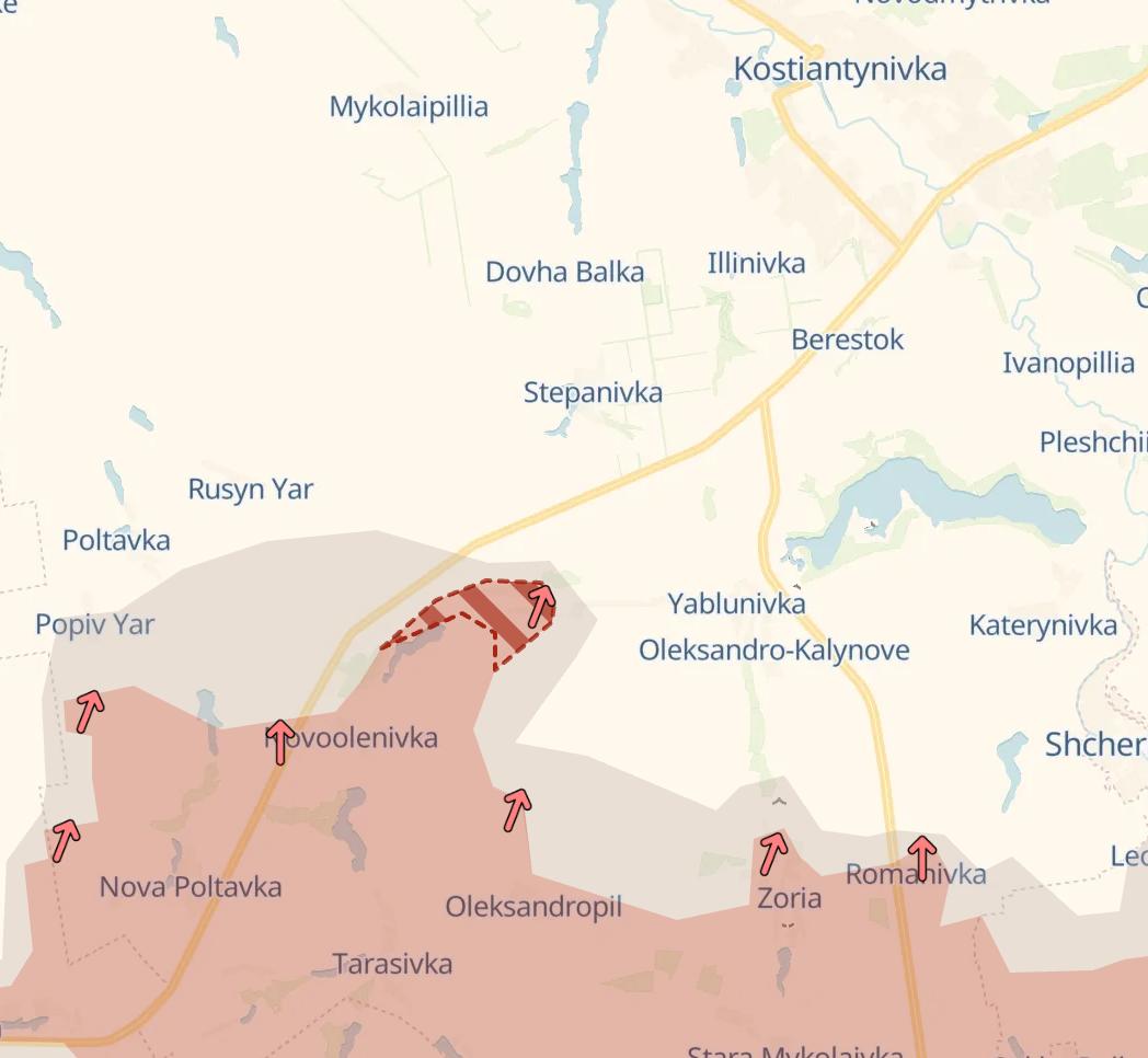 Также войска РФ продвинулись в Яблоновке к югу от Константиновки.