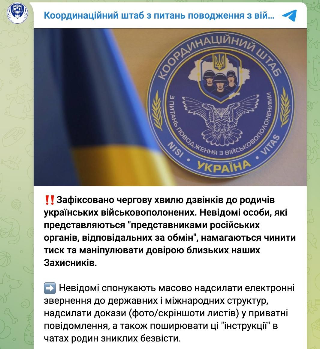 15.14 Представители России звонят родственникам украинских военнопленных и предлагают писать обращения к украинским властям, сообщает украинский Координационный штаб.