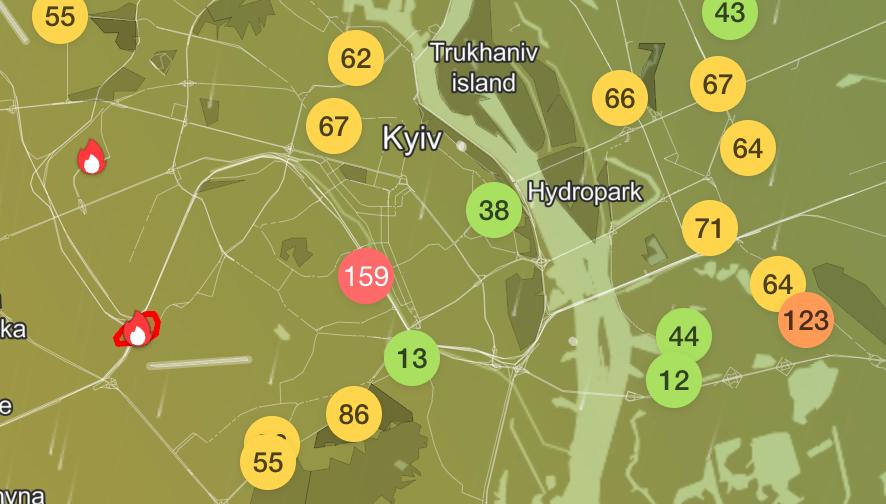 Это примерно совпадает с данными об ухудшении воздуха в Киеве (карта 2).