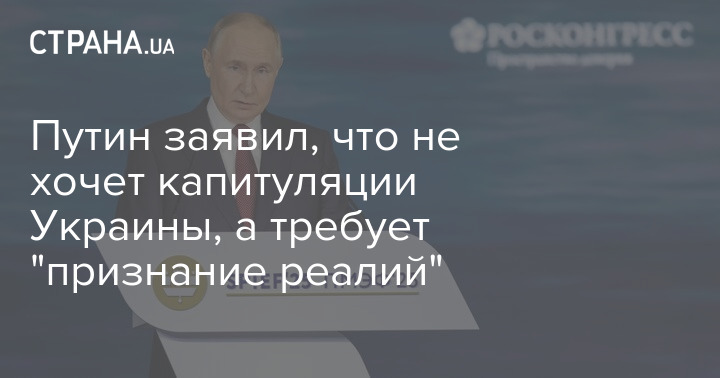 Путин заявил, что не хочет капитуляции Украины, а требует "признание реалий"