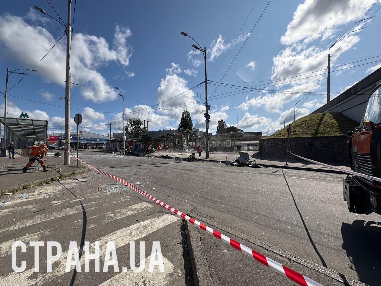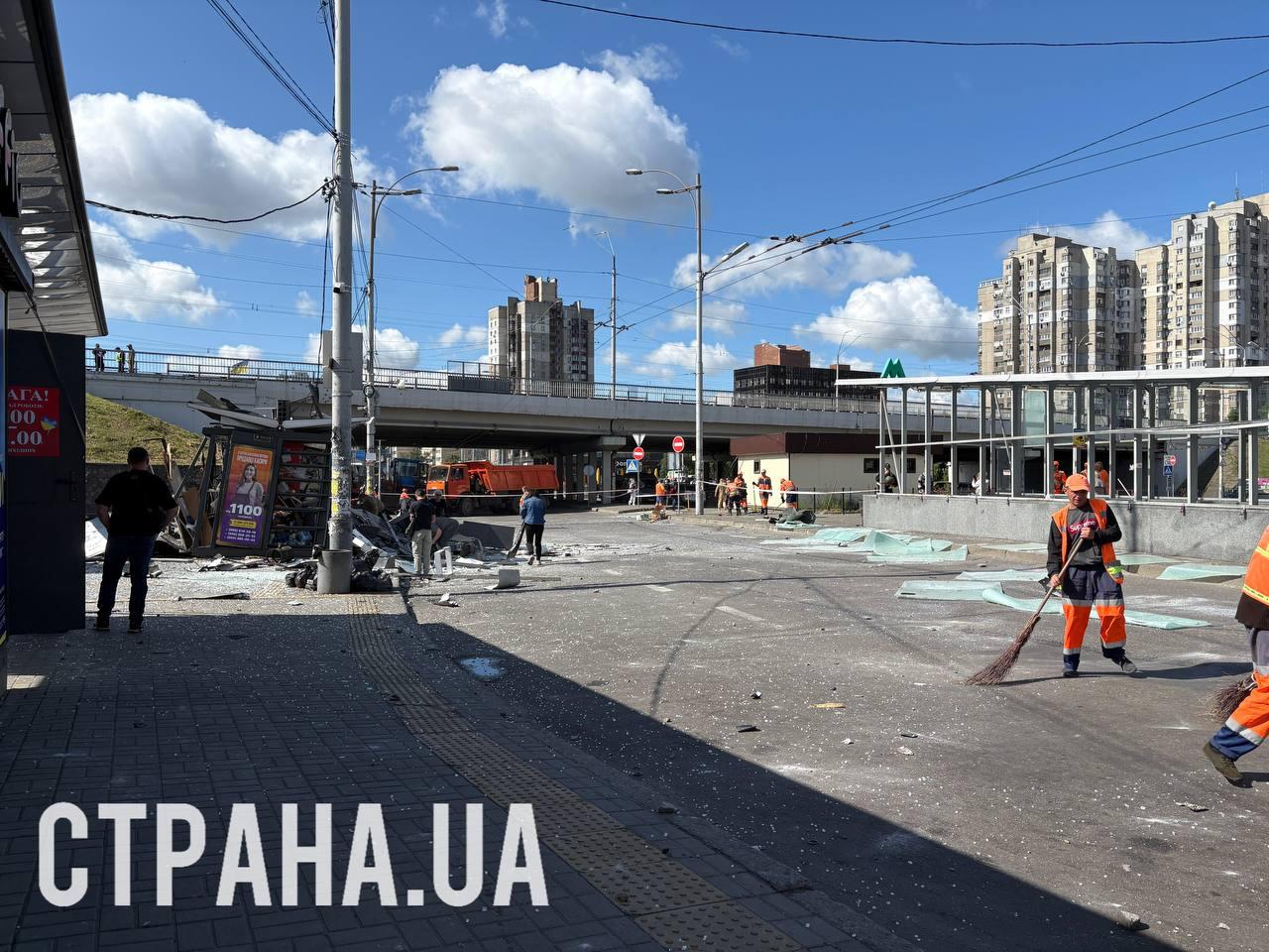9.52 В Киеве после ночного обстрела значительные повреждения получил один из выходов метро в Святошинском районе и расположенные рядом МАФы.