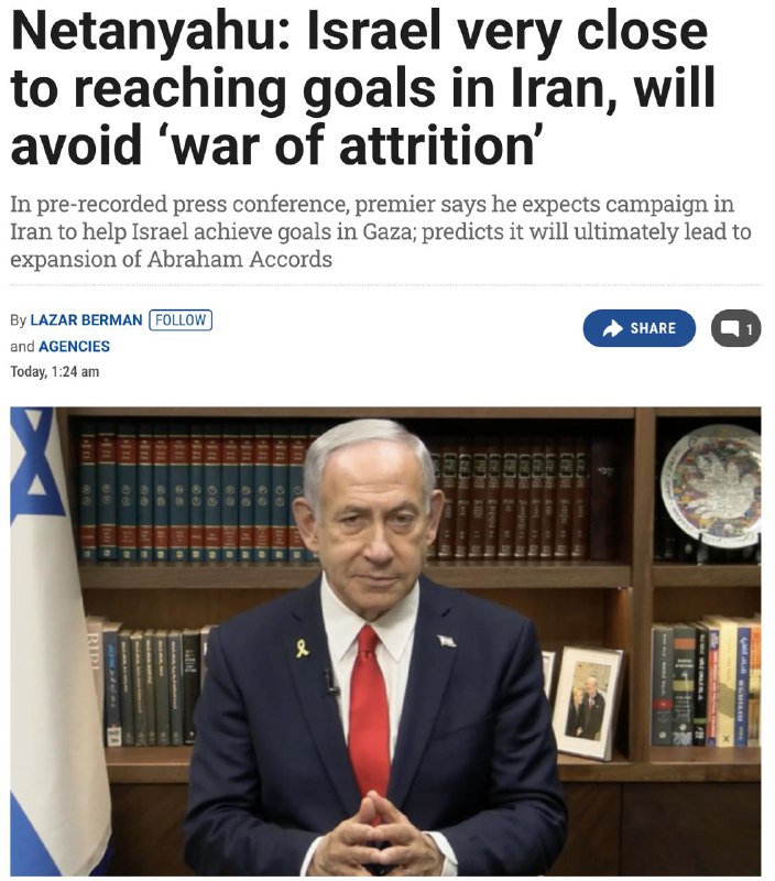 "Мы не будем предпринимать действия, выходящие за рамки того, что необходимо для достижения [целей], но мы также не будем заканчивать слишком рано. Когда цели будут достигнуты, операция завершится и боевые действия прекратятся. Мы очень, очень близки к их достижению", — сказал Нетаньяху.
