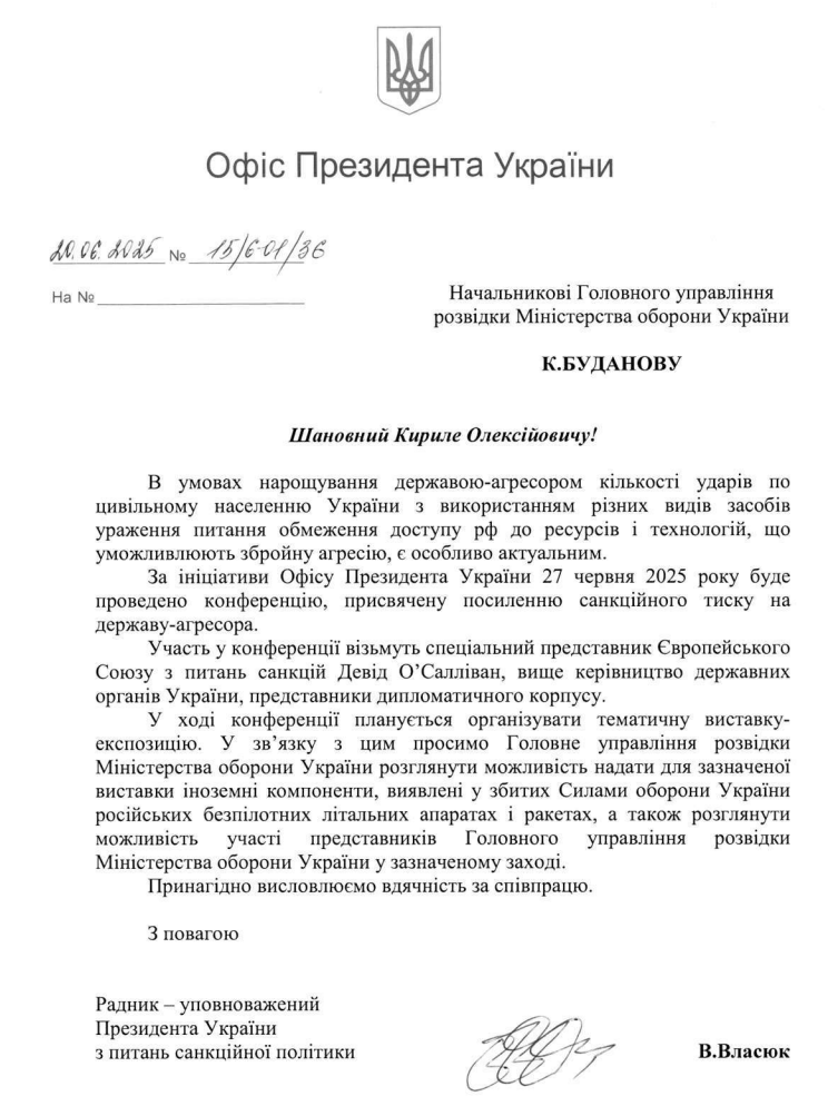 Для усиления эффекта ОП намерен получить от Главного управления разведки образцы компонентов БПЛА и ракетного вооружения зарубежного, прежде всего китайского производства. Необходимо отметить, что украинская военная разведка неоднократно участвовала в организации поставок из КНР дронов и электроники двойного назначения, что позволяет ведомству Буданова продемонстрировать участникам форума детали китайского производства, которые ранее нелегально были добыты военной разведкой Украины.