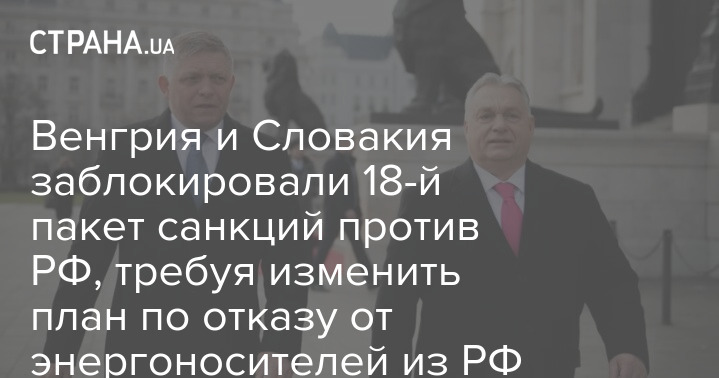 Венгрия и Словакия заблокировали 18-й пакет санкций против РФ, требуя изменить план по отказу от энергоносителей из РФ