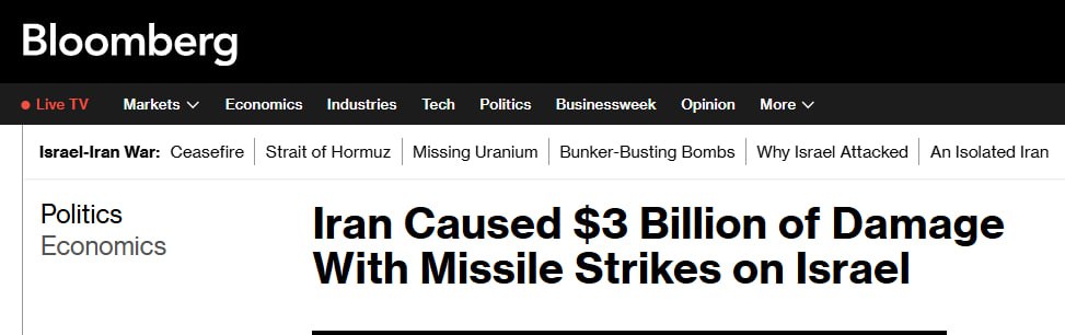 Министр финансов Бецалель Смотрич отметил, что общая стоимость войны может достигнуть $12 млрд: в течение 12 дней экономика Израиля была фактически парализована, школы и большинство предприятий, помимо критически важных, прекратили работу.
