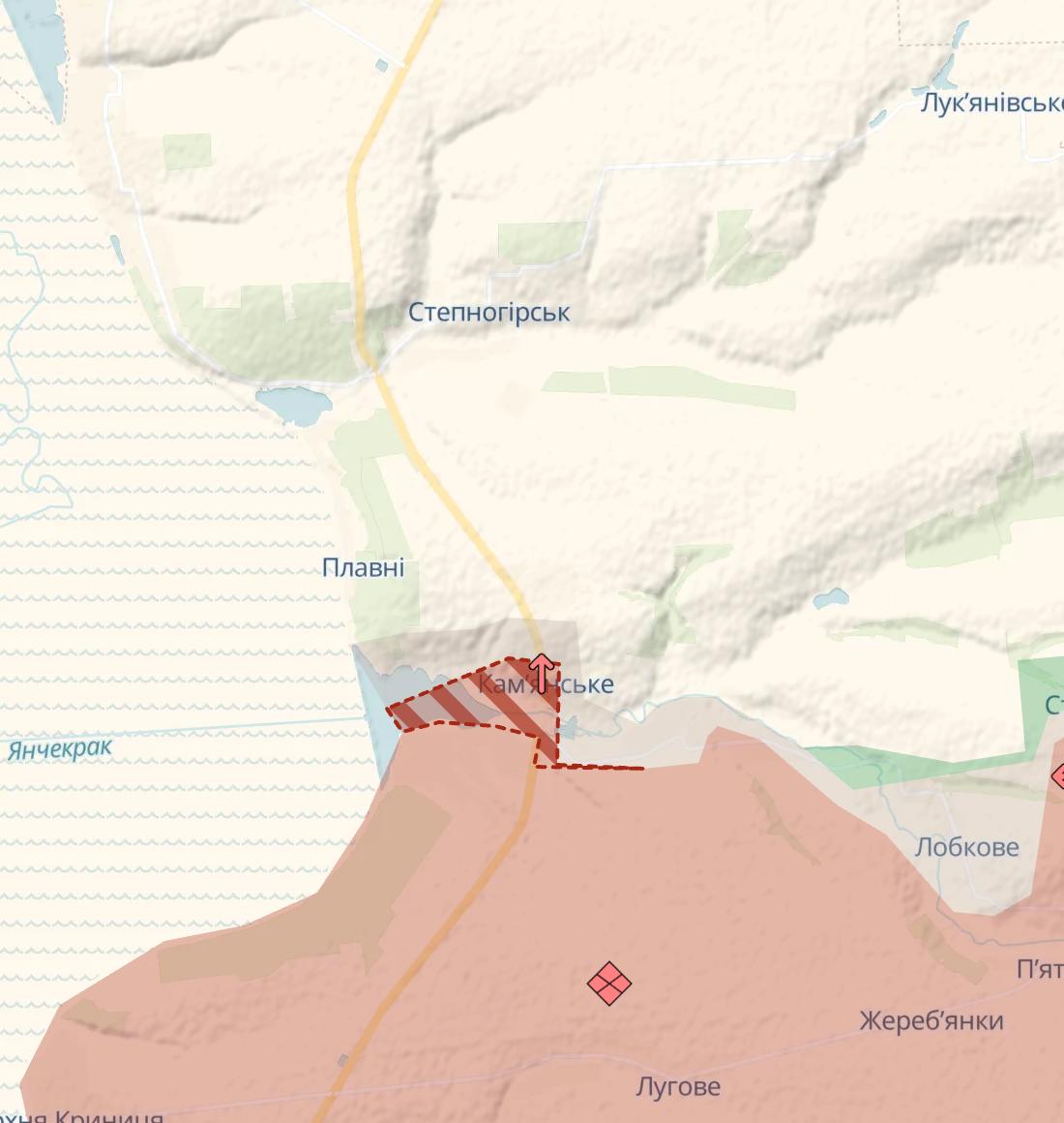 Ранее в Силах обороны юга Украины сообщали, что российские войска на Запорожском направлении пытаются захватить плацдарм в районе Каменского. Этот населенный пункт расположен на господствующей высоте вдоль автодороги Симферополь–Харьков.