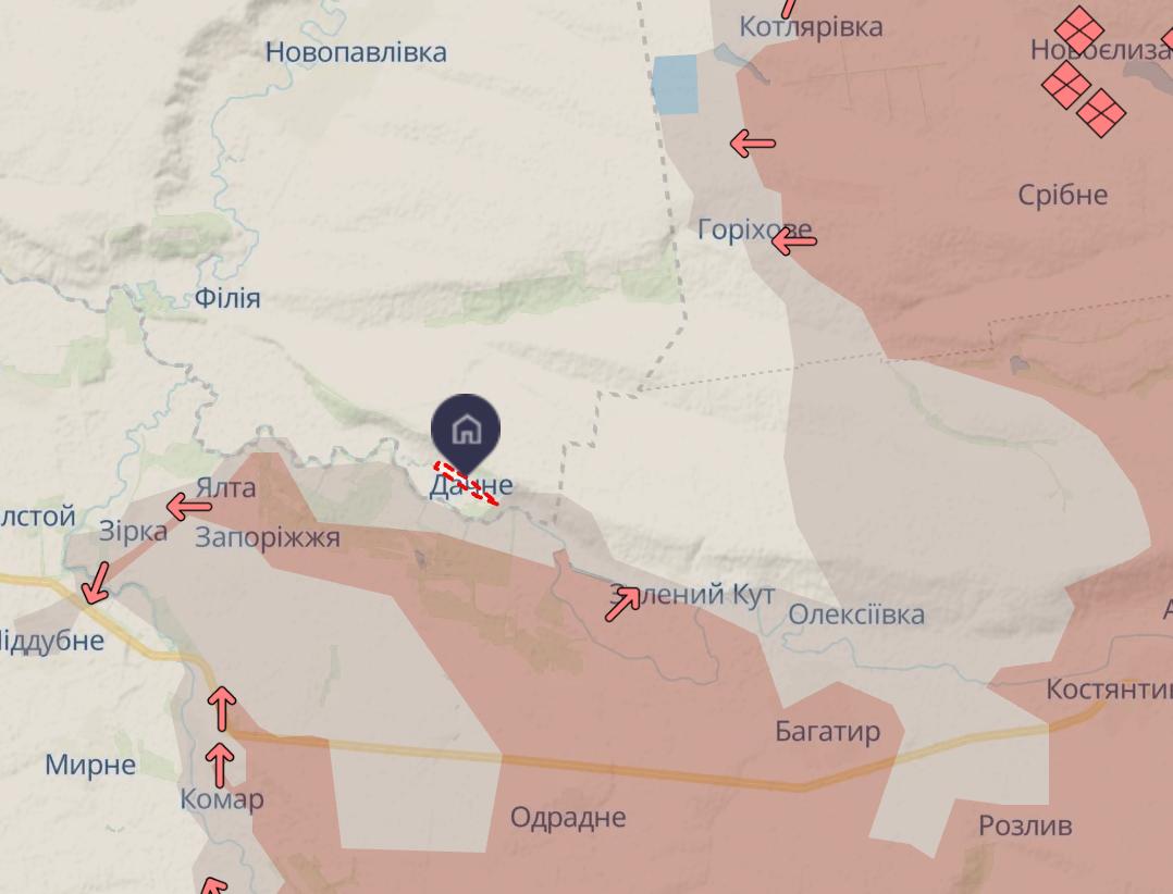 Украинский военный с позывным Мучной подтверждал потерю села. По его данным, с Дачного россияне еще на полкилометра вклинились вглубь Днепропетровской области.