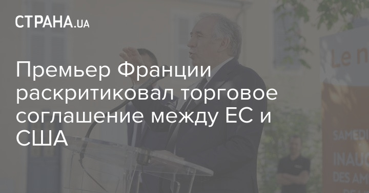 Премьер-министр Франции Франсуа Байру раскритиковал торговое соглашение между Европейским союзом и США.