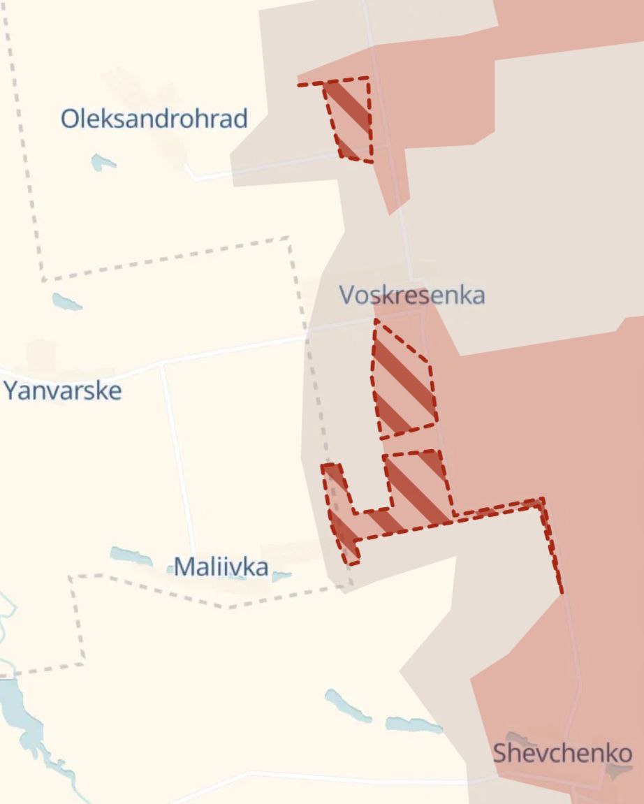 7.50 Российские войска продвинулись у Малиевки Днепропетровской области (в РФ заявляли о ее захвате). Об этом сообщает Deep State.