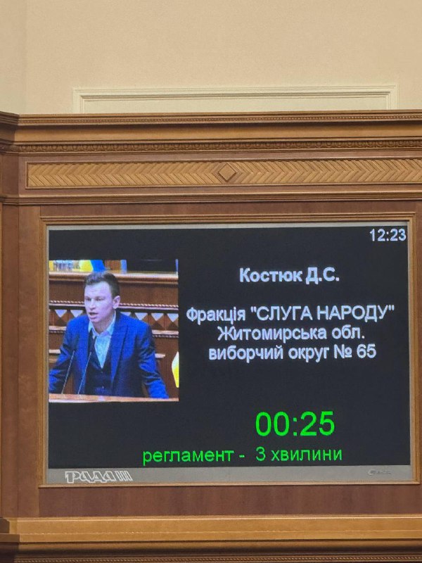 12.26 Депутат Костюк с трибуны Рады объявил, что выходит из фракции "Слуги народа" из-за ситуации с НАБУ.