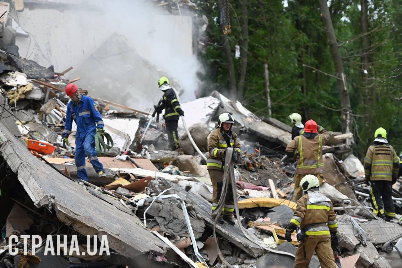 Четверо погибли в Святошинском районе, где обвалился подъезд многоэтажки. Ещё двое - в Соломенском районе.