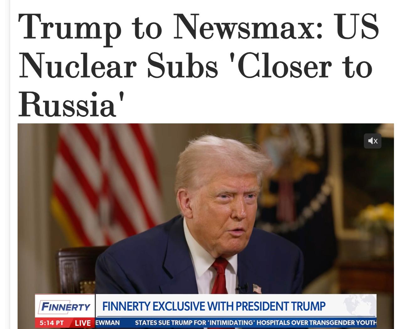 В интервью телеканалу Newsmax Трамп заявил, что атомные подлодки США стали "ближе к России".
