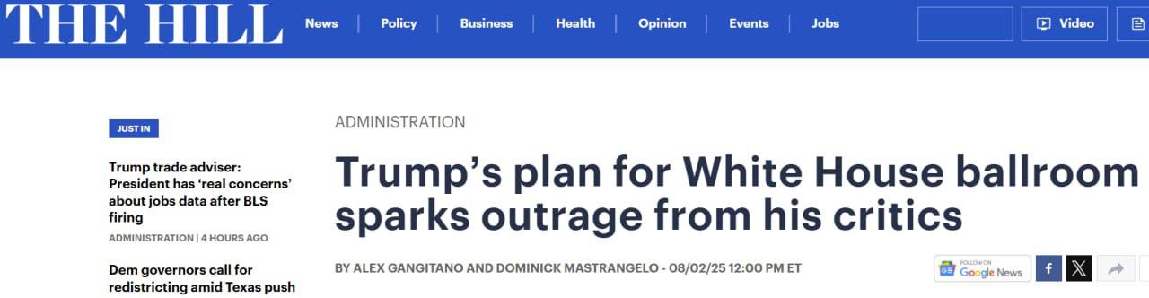 В США критикуют планы Трампа по строительству бального зала в Белом доме за 200 млн долларов - The Hill
