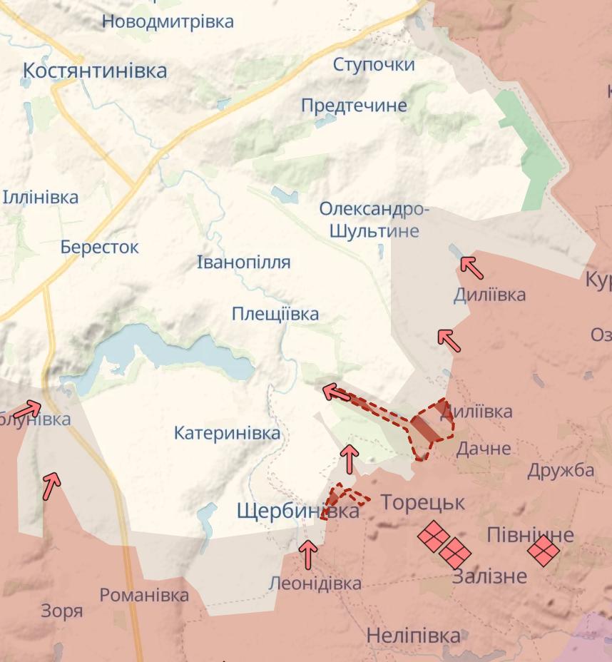 Россияне, по данным Deep State, продвинулись около Торецка и захватили Попов Яр, что между Константиновкой и Покровском.