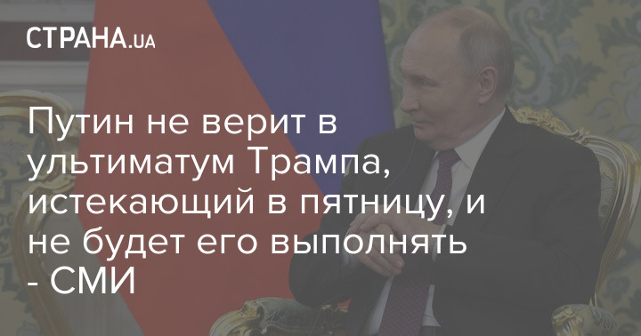 Президент РФ Владимир Путин не верит в ультиматум главы Белого дома Дональда Трампа, который заканчивается в пятницу, и не намерен его исполнять.