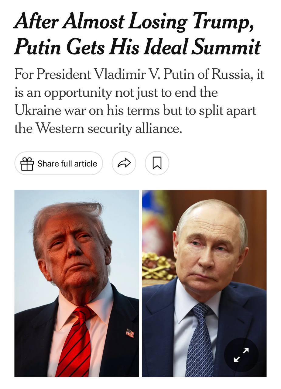 "Это была очень удачная неделя для Путина. Он вывел себя из крайне уязвимого положения. Он превратил весь этот процесс в то, что ему было нужно. Если вы сможете заставить Трампа признать притязания России на львиную долю захваченной ею территории, понимая, что украинцы и европейцы не согласятся на это, вы вобьете долгосрочный клин между США и Европой", - цитирует издание Сэма Грина, профессора российской политики в Королевском колледже Лондона.