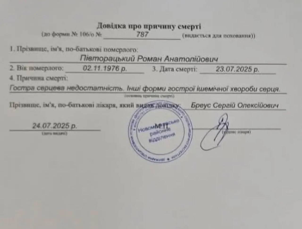 Дочь 52-летнего Романа Пивторацкого сообщает, что после мобилизации у подъезда в Запорожье его повезли в учебный центр. В течение недели родным в части отвечали, что с ним "все в порядке" и он позвонит позже. Но через неделю семье сообщили о смерти, которая наступила уже через сутки после мобилизации.