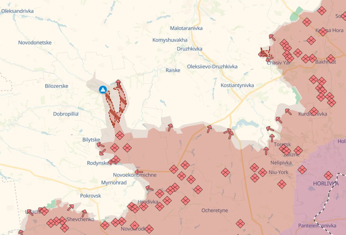 Кроме того, Deep State сообщает о продолжении продвижения РФ к северу от Часова Яра.