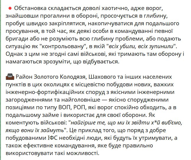 Также паблик пишет о том, что командование одной из бригад, которая держит оборону в этом районе, подаёт "наверх" искаженные данные о реальной ситуации.