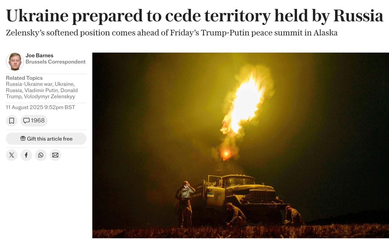 7.47 Украина отказывается от предложений Трампа, но готова "уступить территорию, уже удерживаемую Россией", пишет британская The Telegraph.