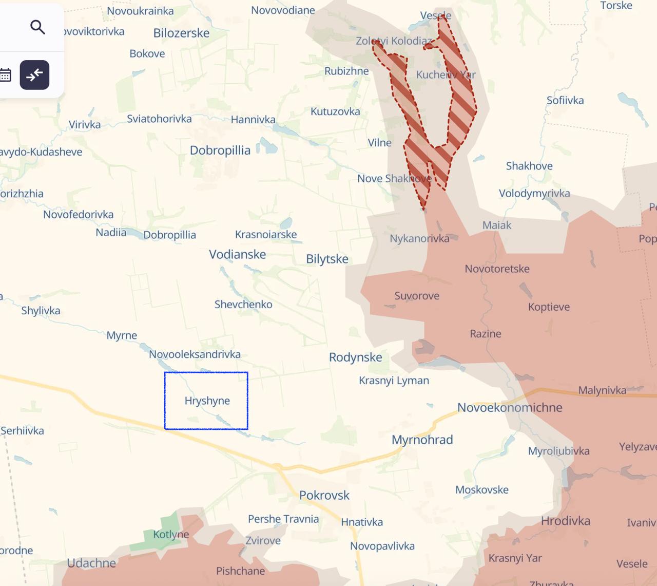 Российские паблики утверждают, что такой прорыв уже происходит, и что войска РФ, наступая со стороны Родинского, дошли до Гришино к северо-западу от Покровска, что означало бы почти полное окружение города (см 3 и 4 карты). Но Украина прорыва к Гришино не подтверждала. На карте Deep State этот населенный пункт находится в тылу ВСУ.